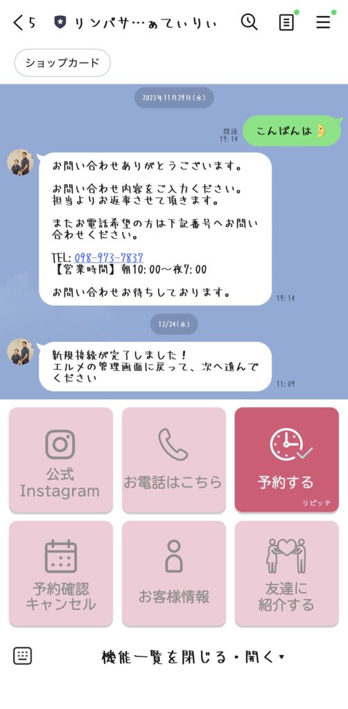 上記のようにメニュー選択や予約カレンダー見てLINEからすぐ出来て、予約の日時がすぐLINE通知されるよう改善しました。